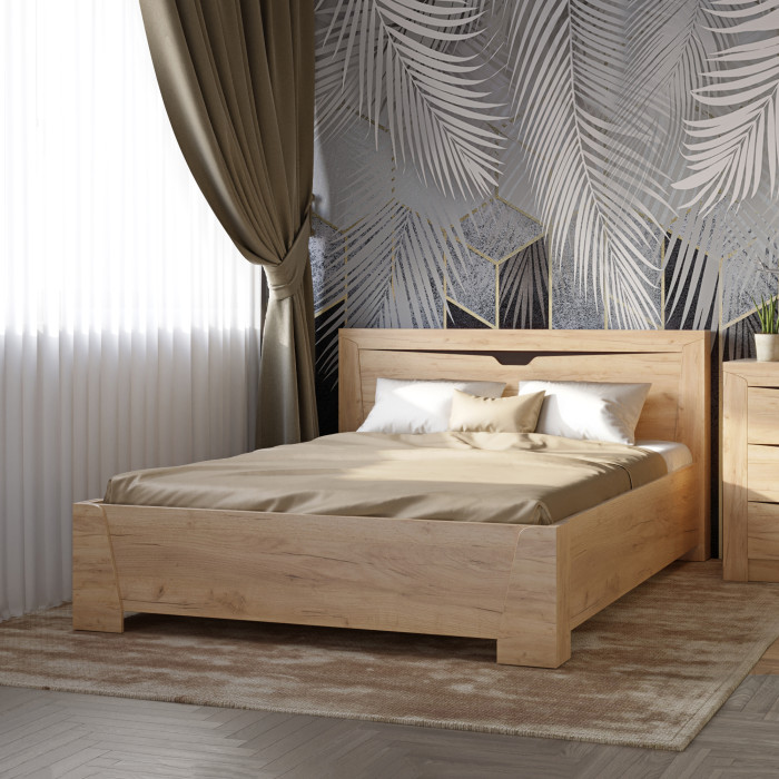 Корпус, узголів'я та підніжжя ліжка виконані з ламінованого ДСП, завтовшки 16 мм, крайка ПВХ 0,5 мм, накладки МДФ.