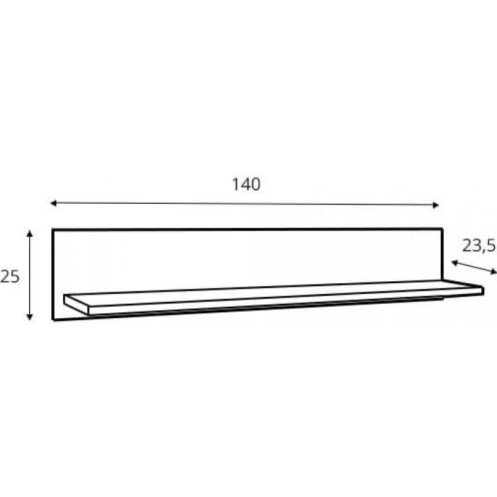 Габарити полиці складають: довжина - 140 см, глибина - 24 см, висота - 25 см. Це не займе багато місця в вашому приміщенні, а організує простір і впорядкує зберігання речей. Полиця Белен POL140 є частиною колекції Белен - лаконічних і функціональних рішень для вашого дому. Це втілення надійності, зручності і комфорту на кожен день.