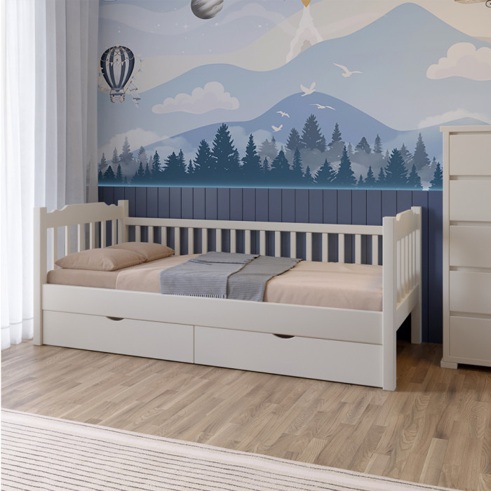 Дитяче ліжко Mebigrand Каріна Айворі (S0505Y30R) 70х190 см із заднім бортиком та ящиками Ліжко односпальне дитяче Mebigrand Каріна Айворі (S0505Y30R) - ідеальне рішення для організації простору у дитячій кімнаті. Виготовлена ​​із соснового дерев'яного масиву, ліжко забезпечує надійність та довговічність використання. Основа ліжка виконана з ламелей, що забезпечує правильну підтримку матраца та комфортний сон. Для покриття використані високоякісні фарби та лаки, що забезпечують безпеку та екологічну чистоту. Ліжко Каріна Айворі (S0505Y30R) випускається з габаритами (Ш х Д х В): Ширина (см): 70. Довжина (см): 190. Висота (см): 80. Комплектація: Комплект ящиків.