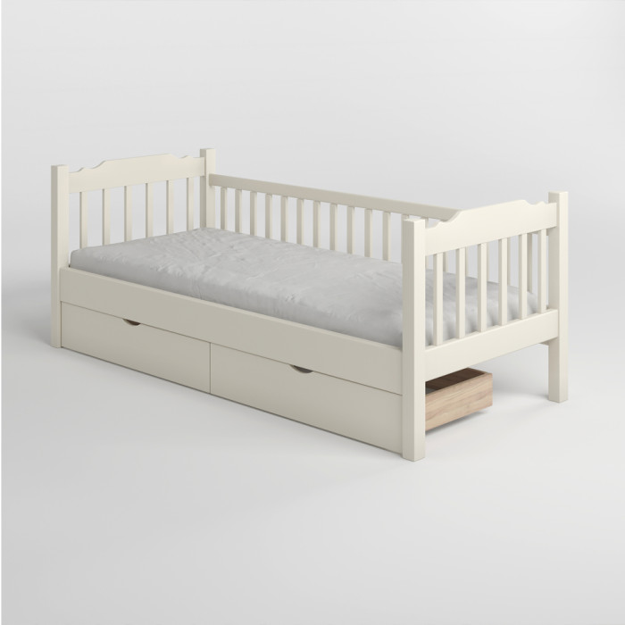 Дитяче ліжко Mebigrand Каріна-2 Айворі (S0505Y30R) 70х190 см із заднім бортиком та ящиками (MBG-2525)