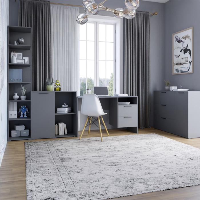 Гарнитур для комнаты LION Краш из 4 элементов Коллекция мебели LION Краш - это стильное и функциональное решение для вашего интерьера. В нее входят: Комод с 2 закрытыми полками и 3 выдвижными ящиками на телескопических направляющих, обеспечивающих удобную организацию одежды, аксессуаров и других вещей. Тумба, идеально подходящая для размещения рядом с кроватью, диваном или письменным столом, обладает компактными размерами и вместительными отделениями. Пенал с открытыми полками, который отлично подойдет для хранения книг, декоративных предметов и мелочей, создавая стильный акцент. Письменный стол с эргономичным дизайном, обеспечивающий комфортное рабочее пространство для учебы или работы. Лаконичный минималистичный дизайн коллекции подчеркивает современный стиль и позволяет гармонично сочетать элементы между собой. LION Краш легко впишется в спальню, гостиную или кабинет, создавая уют, порядок и функциональность в вашем доме. Материал изготовления Гарнитур изготовлен из ЛДСП SWISS KRONO - высококачественного материала, который отличается прочностью, устойчивостью к механическим повреждениям, влаге и высоким температурам. Это гарантирует долговечность мебели и ее привлекательный внешний вид. Особенности Современный стиль: минималистичный дизайн гармонично дополняет современную эстетику интерьера. Вместительность: каждый элемент мебели оснащен просторными отделениями, обеспечивающими порядок и удобство хранения. Удобство: оптимальные размеры позволяют легко интегрировать мебель как в большие, так и в небольшие помещения. Надежность: высококачественный ЛДСП на телескопические направляющие ящиков гарантируют долговечность и устойчивость конструкции. Размеры: Комод: Ширина: 1200 мм Глубина: 430 мм Высота: 860 мм Пенал с открытыми полками: Ширина: 350 мм Глубина: 500 мм Высота: 2000 мм Письменный стол: Ширина: 1250 мм Глубина: 520 мм Высота: 750 мм Тумба однодверная: Ширина: 820 мм Глубина: 430 мм Высота: 860 мм