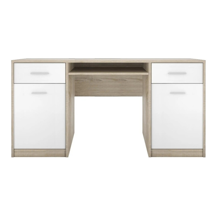 Габарити столу: довжина - 150 см, глибина - 59 см, висота - 75 см. Все це забезпечує комфортне простір для роботи або навчання. Стіл обладнаний двома висувними шухлядами для зберігання канцелярії або інших дрібниць. Дві двері забезпечують додаткове простір для зберігання.