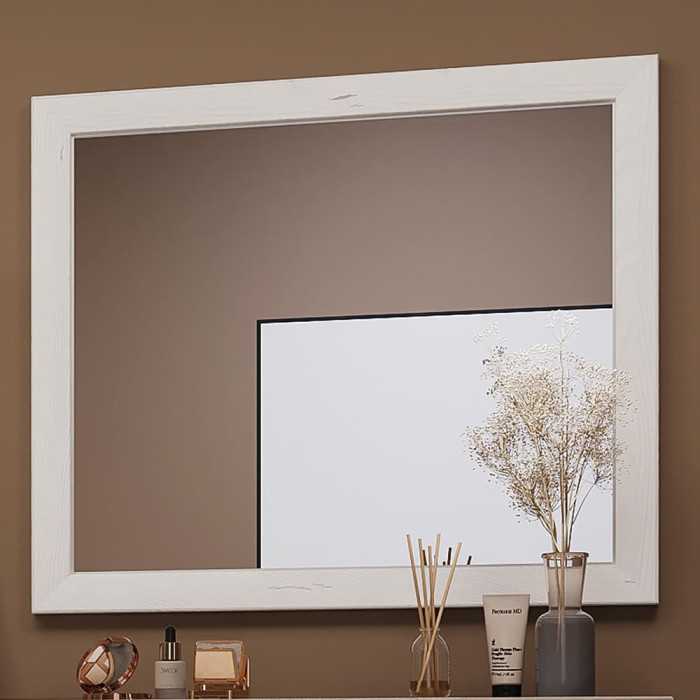 Дзеркало виготовлене з високоякісного дзеркального полотна, яке забезпечує чітке та бездоганне відображення. Його рама виконана з міцного рамочного фасаду, що поєднує ЛДСП і МДФ товщиною 25 мм, а декоративні елементи виготовлені з МДФ, що додає конструкції довговічності та естетичності. Для надійності використовується кромка АБС товщиною 0,5/1 мм, що захищає краї від зношування. Завдяки якісним матеріалам дзеркало зберігає бездоганний вигляд та гармонійно доповнює сучасний інтер'єр.
