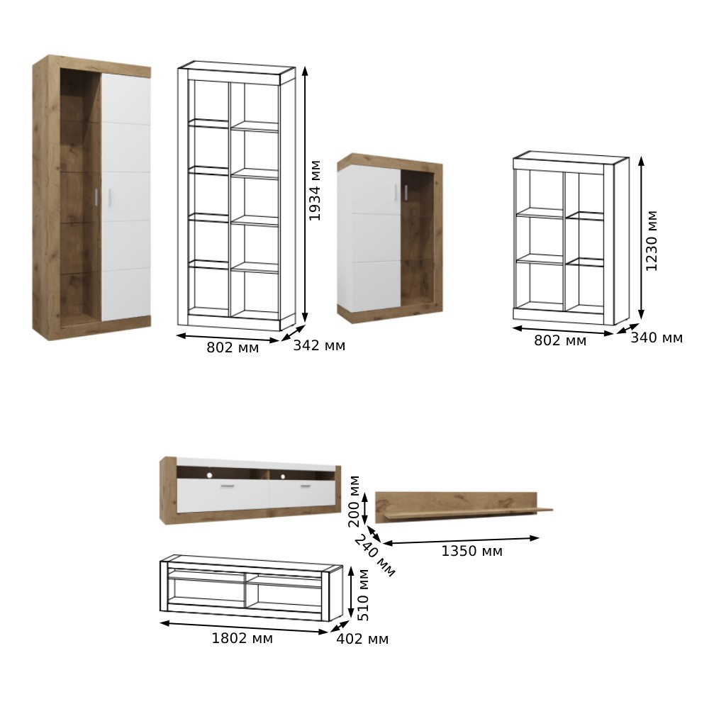- Тумба під телевізор: (ШхВхГ) - 1802х510х402 мм
