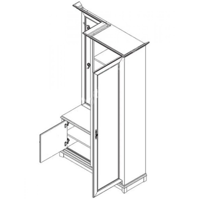 Це оптимальні розміри для комфортного організування вашого простору. В прихожій є дві двері. Це дозволяє ефективно використовувати простір та зберігати необхідні речі під рукою. Модель виконана в універсальному кольорі Каштан. Така кольорова гама буде гармонійно виглядати в будь-якому інтер'єрі та надавати приміщенню нотку затишку. Стильні деталі, такі як роликова фурнітура та фірмові петлі, надають виробу особливої вишуканості.