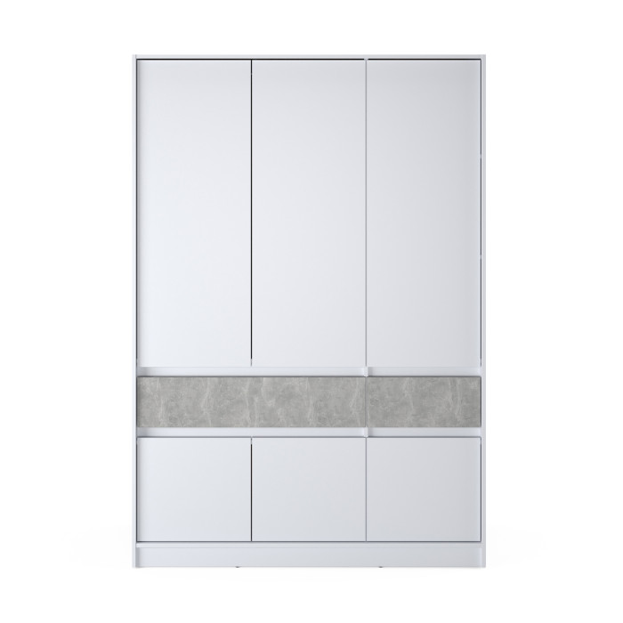 Шафа розпашна для одягу з висувними шухлядами (полиці - штанга) Эверест Стайл-1400 140х53х203 см Німфея Альба (білий)/Бетон (EVR-071152)