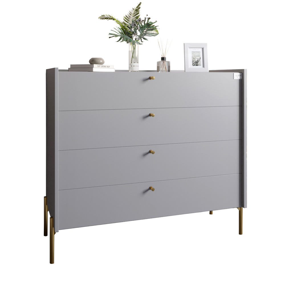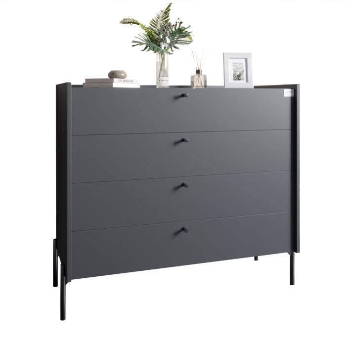 - 4 шухляди на телескопічних направляючих. Забезпечують максимальний комфорт у використанні та дають змогу зберігати різні речі в організованому порядку. Комод пропонує достатньо місця для зберігання білизни, аксесуарів та інших предметів.