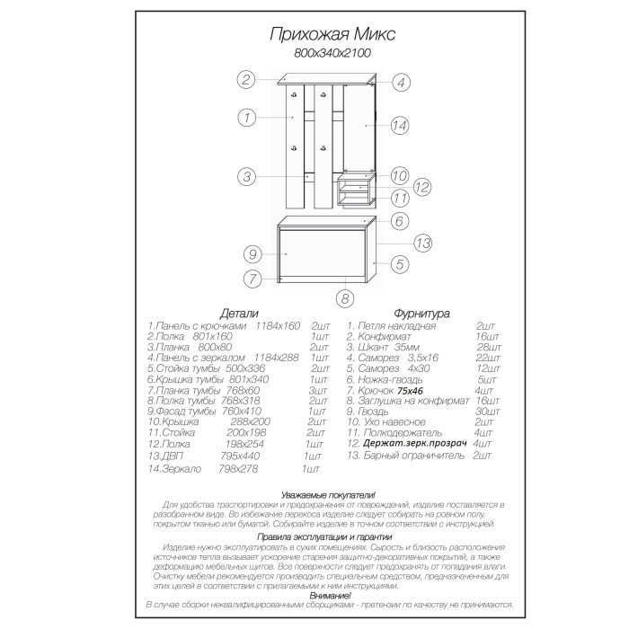 Было б хорошо, если б прилагалась схема сборки и элементы нумеровались. Сколько мебель не заказывала, всегда было. <br />