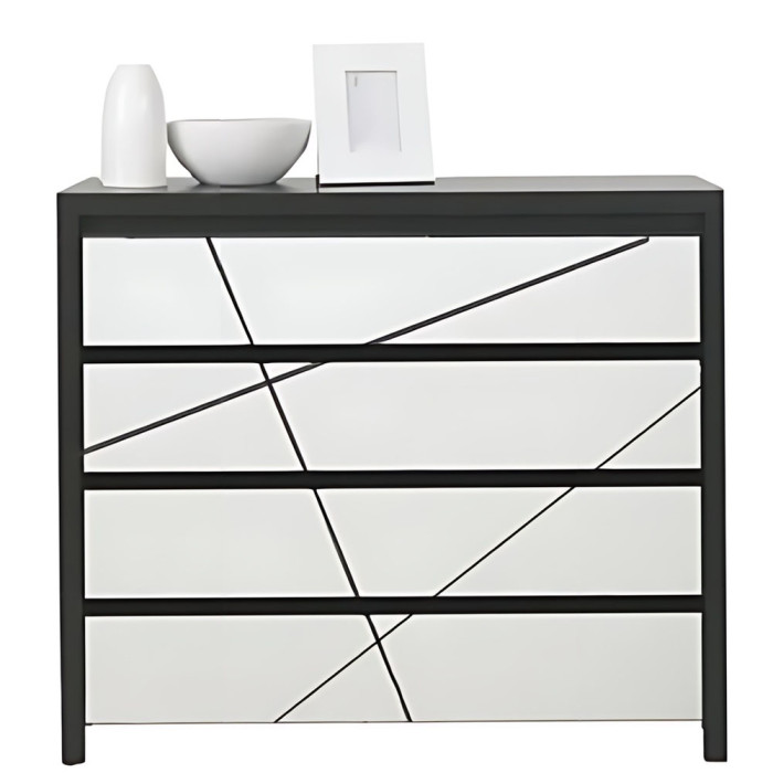 Розміри комода складають 105х40х92 см, що робить його компактним, але вмістким. Комод оснащений чотирма зручними висувними ящиками на роликових направляючих з фірмовими петлями.