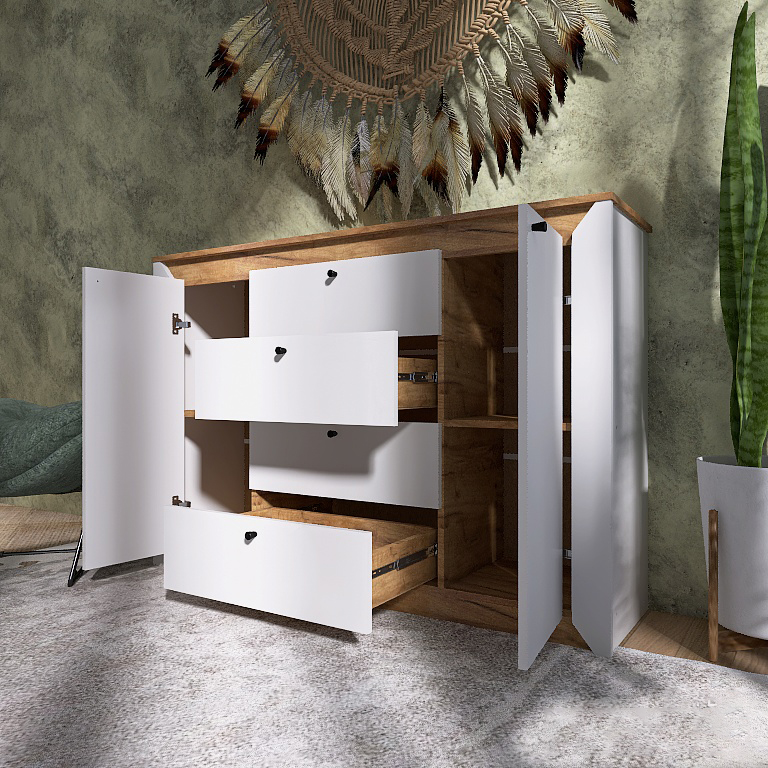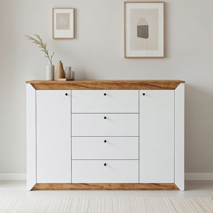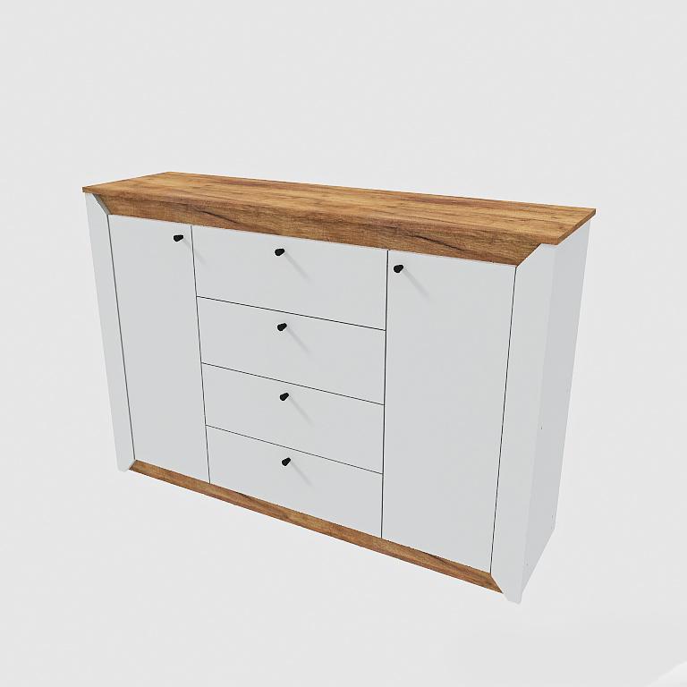 • Естетична довершеність: Елегантний дизайн, що базується на комбінації двох контрастних кольорів, надає комоду сучасного та вишуканого вигляду, дозволяючи йому стати гармонійним доповненням до будь-якого інтер'єру — від мінімалізму до лофту.