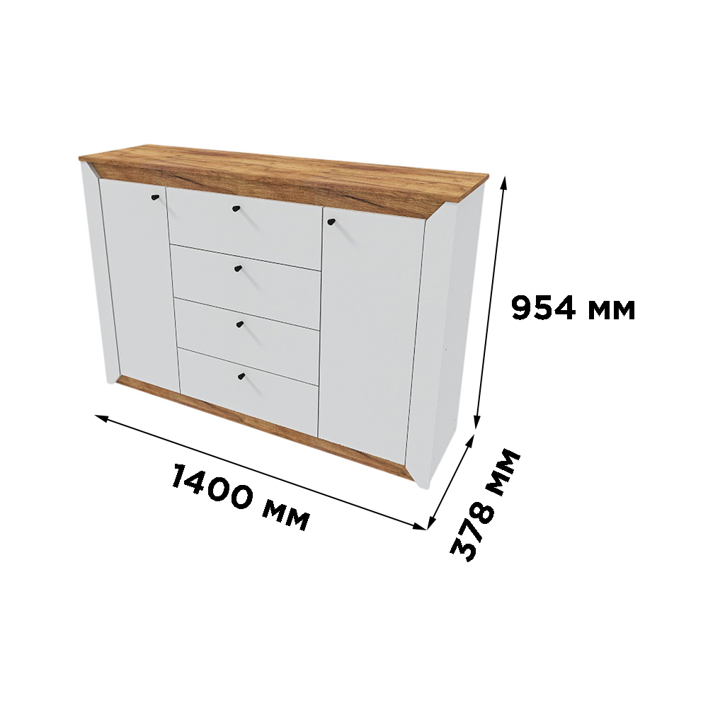 Комод в спальню Еверест Нордік-1400 140х38х95 см Білий/Дуб крафт золотий (EVR-5531)