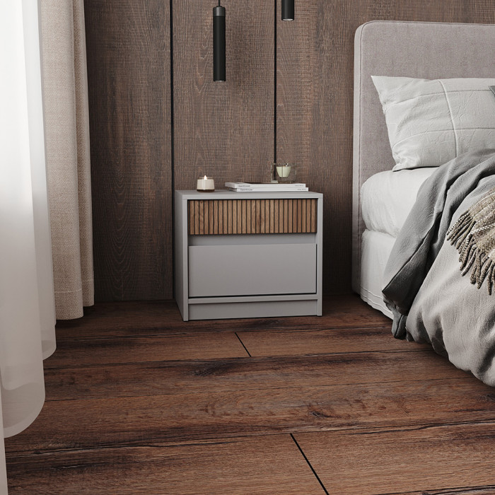 Тумба приліжкова Еверест з колекції Стайл - це невід'ємний елемент меблів у спальні, який стане функціональним доповненням до вашого ліжка. Компактний і сучасний дизайн дозволяє їй гармонійно вписатися в будь-який інтер'єр, а місткі шухляди забезпечують зручне зберігання найнеобхідніших речей. Верхня поверхня тумби може слугувати місцем для розміщення нічної лампи, телефону, склянки води або інших необхідних предметів.