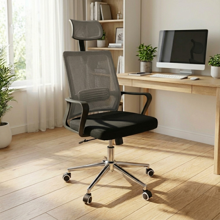 Крісло комп'ютерне з підлокітниками та підголовником Perfect Home OC-8330M Крісло комп'ютерне Perfect Home - це ідеальне рішення для тих, хто цінує комфорт і стиль у робочому просторі. Воно створене для тривалої роботи за комп'ютером, навчання або відпочинку, забезпечуючи зручну посадку і підтримку тіла протягом усього дня. Матеріал виготовлення Корпус виготовлено з міцного пластику, який вирізняється стійкістю до механічних навантажень і зберігає первинний зовнішній вигляд навіть за активної експлуатації. Оббивка виконана з поєднання щільної тканини і дихаючої сітки - таке рішення забезпечує комфорт у будь-яку пору року, запобігає перегріванню і зносу поверхні. Ніжки виконані з пластику, а безшумні коліщатка забезпечують плавний рух будь-якими покриттями, не пошкоджуючи підлогу. Хрестовина з роликами гарантує стійкість конструкції та стабільну посадку, роблячи крісло не тільки зручним, але й безпечним для дитини. Особливості Ергономічна форма. Підтримує поставу, знижує навантаження на спину і сприяє формуванню правильної посадки під час занять. Регульований підголівник допомагає зберегти правильну поставу. Регульована висота сидіння. Дозволяє легко підлаштувати крісло під зріст, забезпечуючи оптимальне положення за столом. Стійка основа. Хрестовина з безшумними коліщатками забезпечує стійкість і безпечне використання навіть при активних рухах. Характеристики: Матеріал корпусу: пластик Матеріал оббивки: тканина+сітка Висота: 1180 мм Ширина: 520 мм Глибина: 580 мм Висота сидіння: 440-540 мм Механізм: TILT