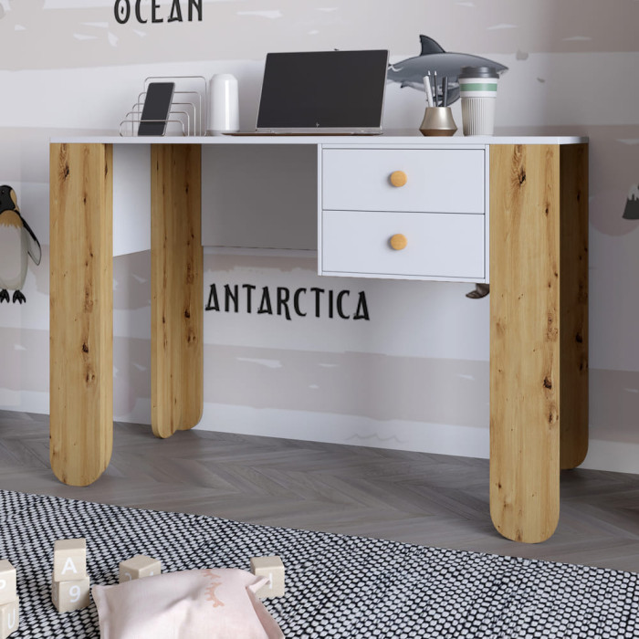 Окрім просторої робочої поверхні, стіл обладнаний двома висувними шухлядами, які надають додаткове місце для зберігання книг, канцелярії чи інших необхідних речей. Така конструкція допомагає організувати порядок і підтримувати чистоту на робочому місці.