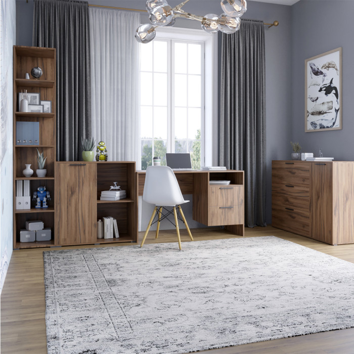 Гарнитур для комнаты LION Краш из 4 элементов Коллекция мебели LION Краш - это стильное и функциональное решение для вашего интерьера. В нее входят: Комод с 2 закрытыми полками и 3 выдвижными ящиками на телескопических направляющих, обеспечивающих удобную организацию одежды, аксессуаров и других вещей. Тумба, идеально подходящая для размещения рядом с кроватью, диваном или письменным столом, обладает компактными размерами и вместительными отделениями. Пенал с открытыми полками, который отлично подойдет для хранения книг, декоративных предметов и мелочей, создавая стильный акцент. Письменный стол с эргономичным дизайном, обеспечивающий комфортное рабочее пространство для учебы или работы. Лаконичный минималистичный дизайн коллекции подчеркивает современный стиль и позволяет гармонично сочетать элементы между собой. LION Краш легко впишется в спальню, гостиную или кабинет, создавая уют, порядок и функциональность в вашем доме. Материал изготовления Гарнитур изготовлен из ЛДСП SWISS KRONO - высококачественного материала, который отличается прочностью, устойчивостью к механическим повреждениям, влаге и высоким температурам. Это гарантирует долговечность мебели и ее привлекательный внешний вид. Особенности Современный стиль: минималистичный дизайн гармонично дополняет современную эстетику интерьера. Вместительность: каждый элемент мебели оснащен просторными отделениями, обеспечивающими порядок и удобство хранения. Удобство: оптимальные размеры позволяют легко интегрировать мебель как в большие, так и в небольшие помещения. Надежность: высококачественный ЛДСП на телескопические направляющие ящиков гарантируют долговечность и устойчивость конструкции. Размеры: Комод: Ширина: 1200 мм Глубина: 430 мм Высота: 860 мм Пенал с открытыми полками: Ширина: 350 мм Глубина: 500 мм Высота: 2000 мм Письменный стол: Ширина: 1250 мм Глубина: 520 мм Высота: 750 мм Тумба однодверная: Ширина: 820 мм Глубина: 430 мм Высота: 860 мм