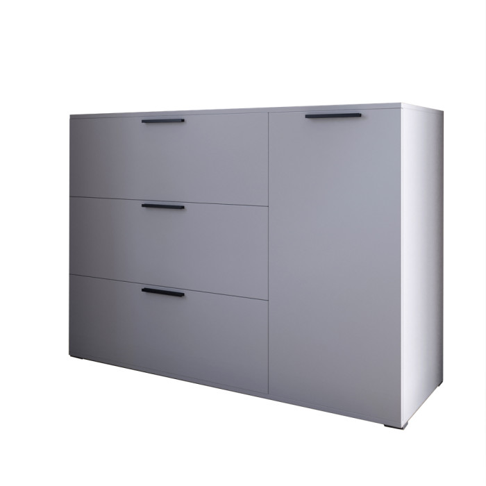Комод с выдвижными ящиками и закрытыми полками LION Краш Комод LION Краш - это стильное и практичное решение для хранения вещей в любом интерьере. Конструкция комода включает 2 полки закрыты дверцами и 3 выдвижных ящика на телескопических направляющих, которые обеспечивают удобную организацию одежды, вещей, аксессуаров и других предметов. Минималистичный дизайн придает современный вид, легко сочетаясь с другими элементами серии LION Краш. Комод отлично подойдет для спальни, гостиной или даже детской комнаты, гармонично вписываясь в их обстановку и создавая уют и порядок. Материал изготовления Комод изготовлен из высококачественного ЛДСП SWISS KRONO, что отличается прочностью, долговечностью и устойчивостью к механическим повреждениям, влаге и температурным перепадам. Этот материал гарантирует сохранение привлекательного вида мебели в течение многих лет. Особенности Современный дизайн: лаконичный и минималистичный вид придают комоду эстетической легкости, позволяя гармонично вписаться в современный интерьер. Внутреннее пространство организовано максимально удобно для размещения одежды, текстиля, предметов, аксессуаров и других вещей. Высокая функциональность: закрытые полки и ящики на телескопических направляющих обеспечивают достаточно места для хранения и организации, позволяя поддерживать порядок и эффективно использовать пространство в комнате. Кромка 2 мм: защищает края изделия от повреждений, придает эстетически завершенный вид и повышает долговечность комода. Кромка изготавливается из прочных материалов, что позволяет ей выдерживать интенсивное использование и сохранять привлекательный внешний вид на протяжении многих лет. Надежность и долговечность: прочная конструкция из качественного ЛДСП обеспечивает длительный срок эксплуатации и устойчивость к износу. Размеры: Ширина: 1200 мм Глубина: 430 мм Высота: 860 мм