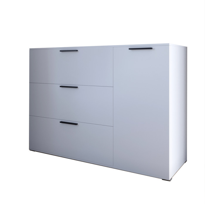 Комод с выдвижными ящиками и закрытыми полками LION Краш Комод LION Краш - это стильное и практичное решение для хранения вещей в любом интерьере. Конструкция комода включает 2 полки закрыты дверцами и 3 выдвижных ящика на телескопических направляющих, которые обеспечивают удобную организацию одежды, вещей, аксессуаров и других предметов. Минималистичный дизайн придает современный вид, легко сочетаясь с другими элементами серии LION Краш. Комод отлично подойдет для спальни, гостиной или даже детской комнаты, гармонично вписываясь в их обстановку и создавая уют и порядок. Материал изготовления Комод изготовлен из высококачественного ЛДСП SWISS KRONO, что отличается прочностью, долговечностью и устойчивостью к механическим повреждениям, влаге и температурным перепадам. Этот материал гарантирует сохранение привлекательного вида мебели в течение многих лет. Особенности Современный дизайн: лаконичный и минималистичный вид придают комоду эстетической легкости, позволяя гармонично вписаться в современный интерьер. Внутреннее пространство организовано максимально удобно для размещения одежды, текстиля, предметов, аксессуаров и других вещей. Высокая функциональность: закрытые полки и ящики на телескопических направляющих обеспечивают достаточно места для хранения и организации, позволяя поддерживать порядок и эффективно использовать пространство в комнате. Кромка 2 мм: защищает края изделия от повреждений, придает эстетически завершенный вид и повышает долговечность комода. Кромка изготавливается из прочных материалов, что позволяет ей выдерживать интенсивное использование и сохранять привлекательный внешний вид на протяжении многих лет. Надежность и долговечность: прочная конструкция из качественного ЛДСП обеспечивает длительный срок эксплуатации и устойчивость к износу. Размеры: Ширина: 1200 мм Глубина: 430 мм Высота: 860 мм