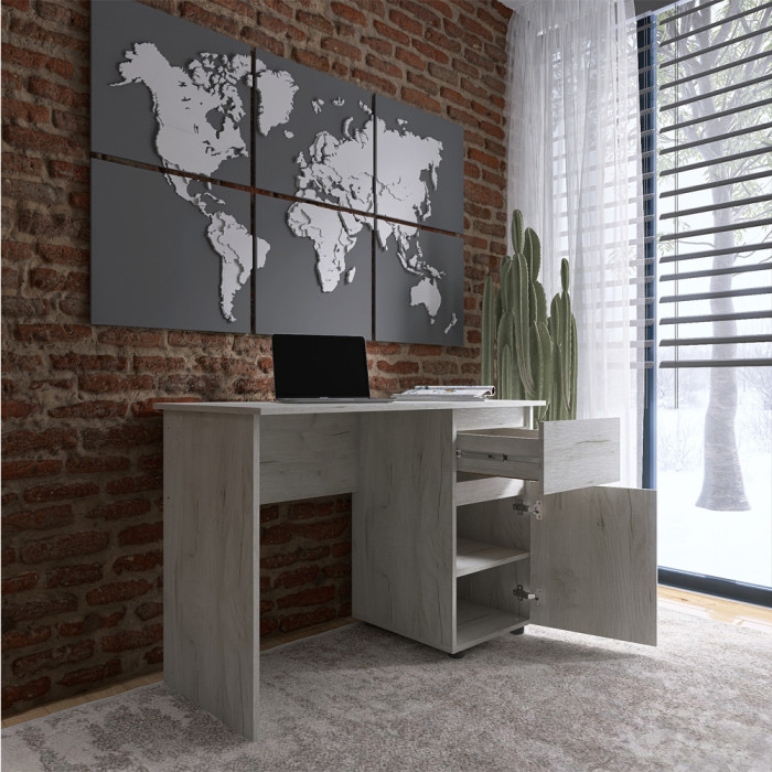 • Зручне зберігання. Висувна шухляда на телескопічних напрямних ідеально підходить для канцелярії та дрібниць, а полиці за зачиненими дверцятами дають змогу акуратно розмістити документи, книги або техніку, допомагаючи організувати простір.