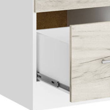 Модуль виготовлений із екологічно чистого ЛДСП швейцарської компанії Kronospan, що відповідає класу емісії E1, гарантує безпечність для здоров’я та довговічність у використанні. Фурнітура забезпечує плавне відкривання та закривання, а якісне покриття стійке до подряпин, вологи та перепадів температур.
