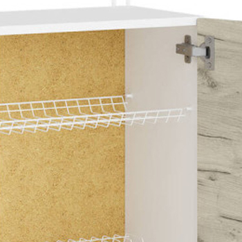 Модуль виготовлений із екологічно чистого ЛДСП швейцарської компанії Kronospan, що відповідає класу емісії E1, гарантує безпечність для здоров’я та довговічність у використанні. Фурнітура забезпечує плавне відкривання та закривання, а якісне покриття стійке до подряпин, вологи та перепадів температур. Сушарка з нержавіючої сталі з хромованими рейлінговими ручками (128 мм) і якісною фурнітурою гарантує зручність і надійність у використанні.