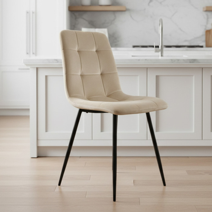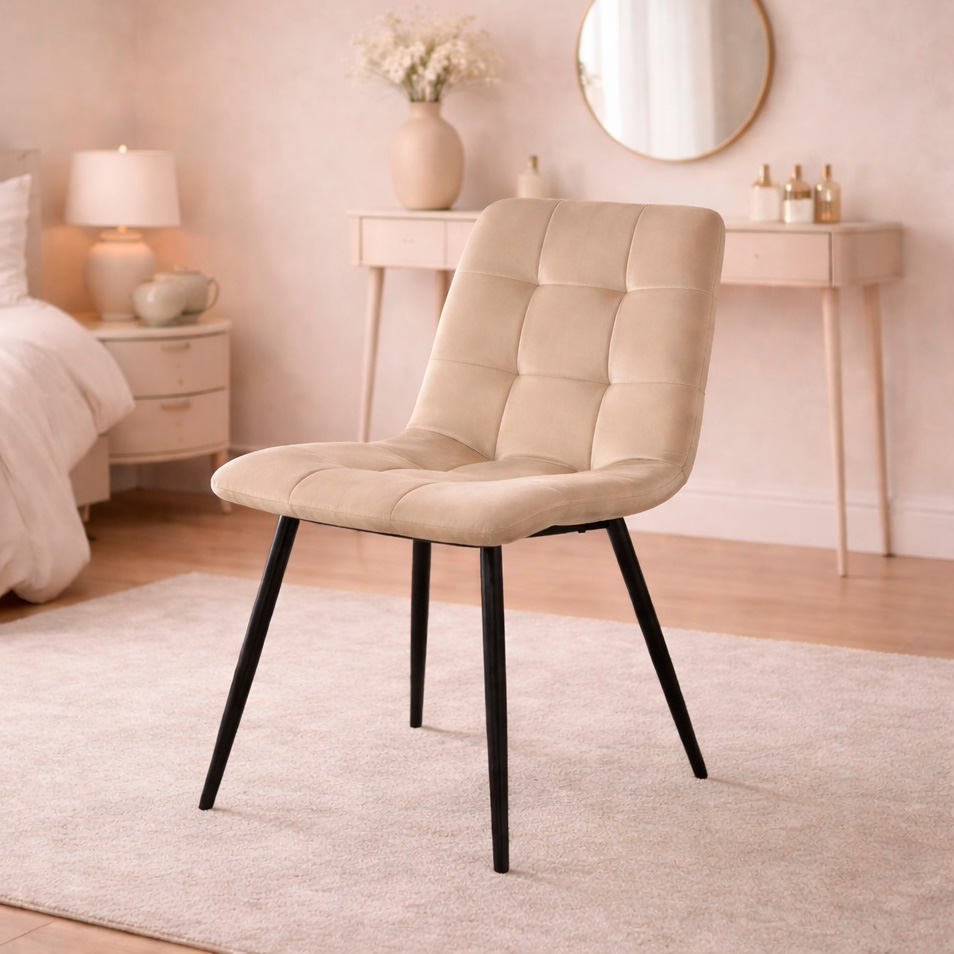Стілець PM-003 від Perfect Home — це стильне та зручне рішення для спальні, кухні, їдальні або залу. М’яка велюрова оббивка бежевого кольору надає інтер’єру відчуття затишку та елегантності, а міцний металевий каркас із чорним порошковим покриттям забезпечує надійність і тривалий термін експлуатації. Лаконічний дизайн у стилі лофт легко поєднується з різними інтер’єрними рішеннями.