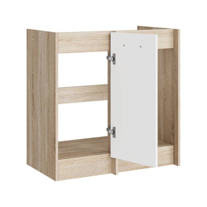 Модуль виготовлений із екологічно чистого ЛДСП швейцарської компанії Kronospan, що відповідає класу емісії E1, гарантує безпечність для здоров’я та довговічність у використанні. Фурнітура забезпечує плавне відкривання та закривання, а якісне покриття стійке до подряпин, вологи та перепадів температур.