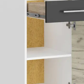 Модуль виготовлений із екологічно чистого ЛДСП швейцарської компанії Kronospan, що відповідає класу емісії E1, гарантує безпечність для здоров’я та довговічність у використанні. Фурнітура забезпечує плавне відкривання та закривання, а якісне покриття стійке до подряпин, вологи та перепадів температур.