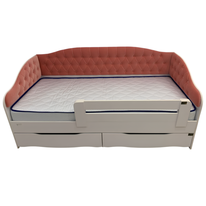 Однією з головних переваг цього ліжка є наявність м'яких бортиків і спинки, що забезпечує зручність і комфорт вашої дитини під час сну. Крім того, ліжко має дві місткі висувні шухляди з телескопічними направляючими повного висування, що забезпечують зручне зберігання постільної білизни, іграшок чи інших речей, зберігаючи порядок у кімнаті. Також, ліжко може бути доукомплектоване захисним бильце-бортиком для запобігання падінню дітей.