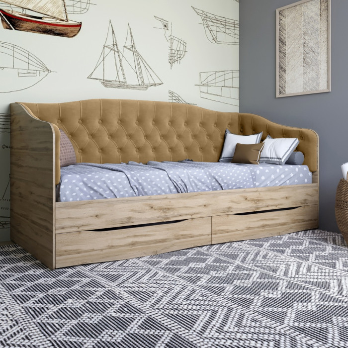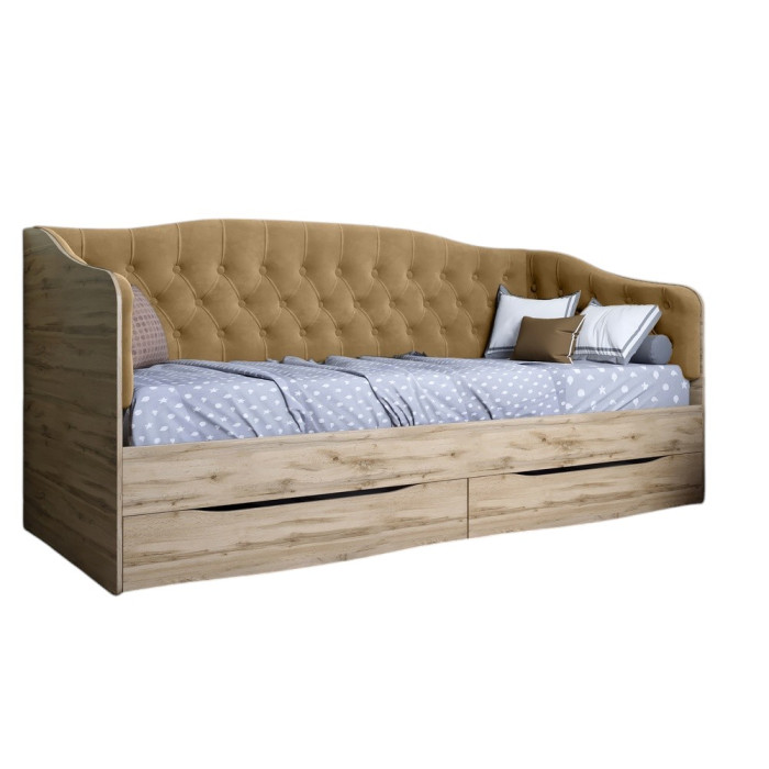 Ліжко дитяче односпальне LION Л-9 з м'якою спинкою і висувними шухлядами 190x90 см Дуб Аппалачі/Лілі-02 (LION-041470)