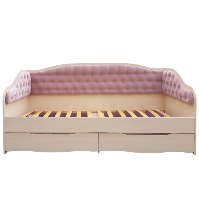 • М'яка спинка. Оббивка з міцної та приємної на дотик тканини. Спинка забезпечує комфорт під час читання, відпочинку або перегляду мультфільмів. Зручне рішення для додаткового захисту дитини від зіткнення зі стіною.