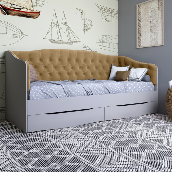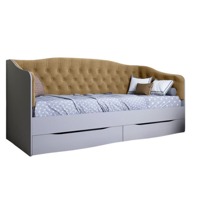 Ліжко дитяче односпальне LION Л-9 з м'якою спинкою і висувними шухлядами 190x90 см Кашемір/Лілі-02 (LION-041479)