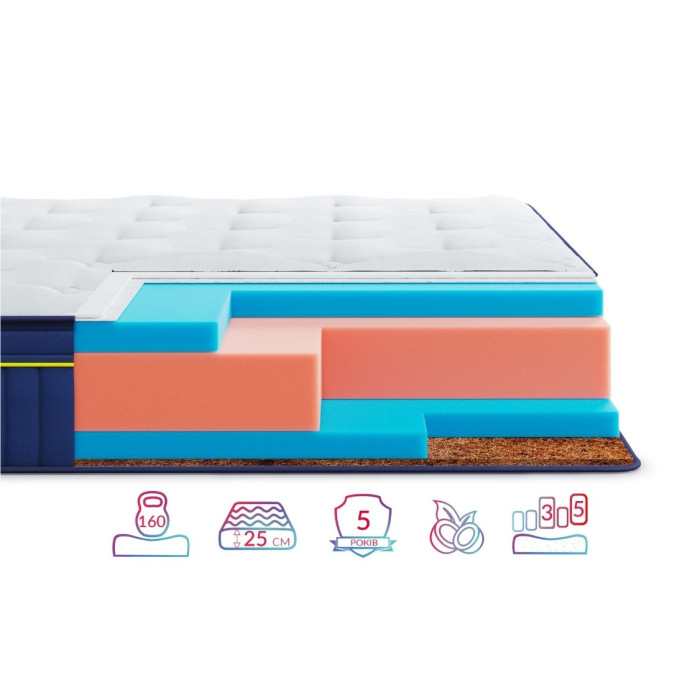 - Наповнення: кокосова койра, пінополіуретан Highfoam, пінополіуретан Ortofoam;