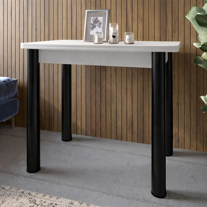 Обідній стіл розкладний LION Нота чорні ніжки Німфея Альба (білий) 60x90/90x120 (LION-045141)