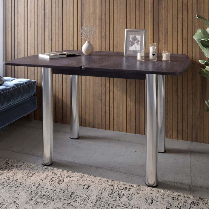 Обідній стіл розкладний LION Нота Обідній стіл LION Нота — це сучасний розкладний стіл із прямокутною стільницею, виконаною з ЛДСП, на металевому каркасі. Його стильний дизайн та можливість збільшення розміру роблять його зручним рішенням для кухні чи їдальні. У складеному вигляді стіл має компактний розмір, а в розкладеному підходить для прийому гостей. Міцна конструкція забезпечує довговічність, а нейтральний дизайн вписується в будь-який інтер'єр. Цей стіл стане ідеальним вибором для тих, хто цінує функціональність та комфорт у побуті. Матеріал виготовлення Стіл виготовлено з ЛДСП SWISS KRONO - високоякісного матеріалу, що поєднує естетику з міцністю і надійністю. ЛДСП від SWISS KRONO відомий своєю стійкістю до механічних пошкоджень, вологи та високих температур, що гарантує довговічність меблів і зберігає їхній естетичний вигляд на довгі роки. Стіл оснащений міцними металевими ніжками, які забезпечують стабільність і довговічність конструкції, а також додають сучасного вигляду дизайну. Особливості Простота догляду: Поверхня легко очищається, що ідеально підходить для повсякденного використання. Розкладна конструкція: Стіл дає змогу збільшувати розмір стільниці, що робить його зручним для приймання до 6 гостей. Сучасний дизайн: Стильний і мінімалістичний вигляд завдяки лаконічним лініям та кольоровій палітрі, що пасує до будь-якого інтер’єру. Розміри: У складеному вигляді: Ширина: 900 мм Глибина: 600 мм Висота: 750 мм У розкладеному вигляді: Ширина: 1200 мм Глибина: 900 мм Висота: 736 мм