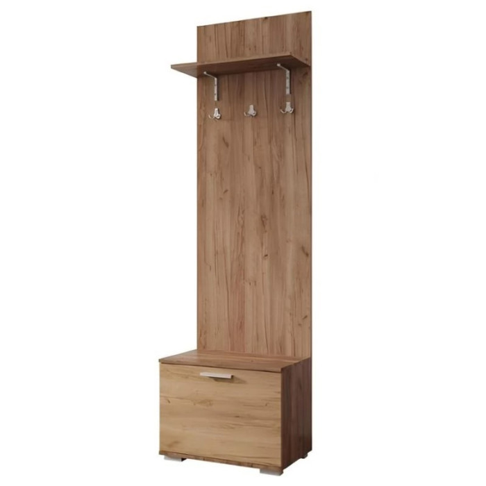 Передпокій прямий "Сокме Віва" — це стильний і практичний меблевий комплект, який забезпечує повну організацію простору. Набір складається з трьох модулів: тумби з дзеркалом для зберігання дрібниць і взуття, відкритої вішалки з полицею для головних уборів і гачками для одягу, а також місткої шафи для верхнього одягу та інших речей. Лаконічний дизайн із натуральною текстурою дерева додає інтер’єру затишку і гармонії. Завдяки продуманій конструкції та ергономіці передпокій ідеально підходить для сучасних квартир, дозволяючи раціонально використовувати простір.