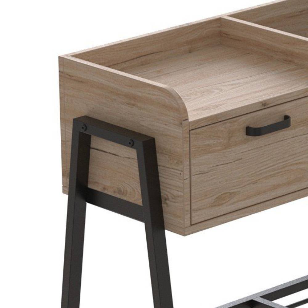 • Сучасний дизайн, що гармонійно поєднує метал і деревину.