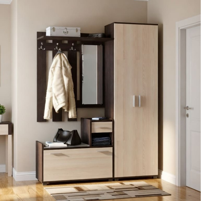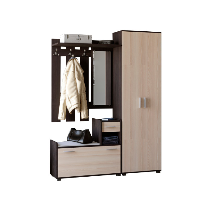 • Повноцінна розпашна шафа: До комплекту входить шафа ШП-1, яка призначена для дбайливого зберігання верхнього одягу та сезонних аксесуарів за закритими фасадами.