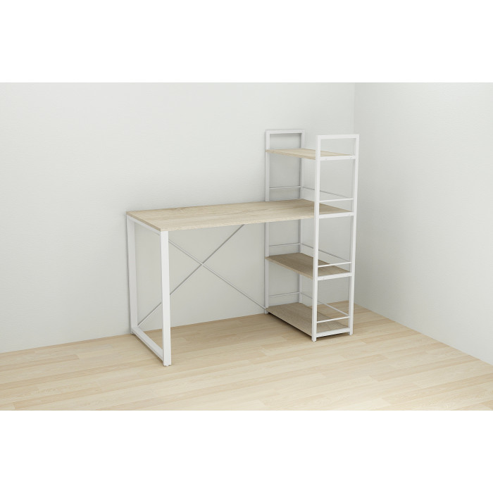 Письмовий стіл Ferrum-decor Серії Конект з етажеркою 75x120x600 білий ДСП Дуб Сонома 16мм (FRD-104227)