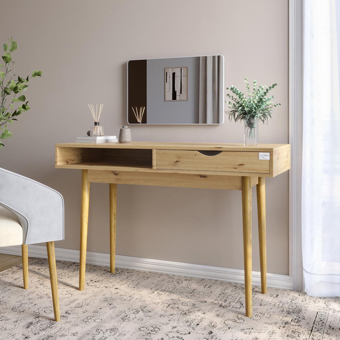 Столик Сканді-1 від Lion - це стильне рішення в скандинавському стилі, яке поєднує в собі мінімалізм і функціональність. Компактний і елегантний, він ідеально підходить для сучасних інтер'єрів. Завдяки продуманій конструкції та якісним матеріалам, столик забезпечує комфортне місце для зберігання аксесуарів, ноутбука, додаючи вашій кімнаті затишку та організованості.
