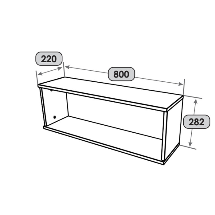 Полицю виготовлено з високоякісного ЛДСП, що забезпечує міцність і довговічність виробу. Кромка-ПВХ захищає краї від зносу, подовжує термін служби меблів і робить їх більш естетичними. Використання сучасних матеріалів робить полицю надійною і стійкою до повсякденного використання.