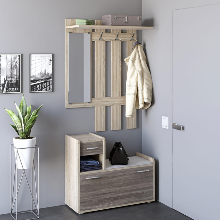 - Містке взуттєве відділення: Велика ніша в нижній тумбі забезпечує приховане зберігання взуття, що допомагає підтримувати візуальну чистоту в коридорі.