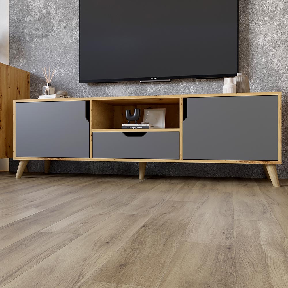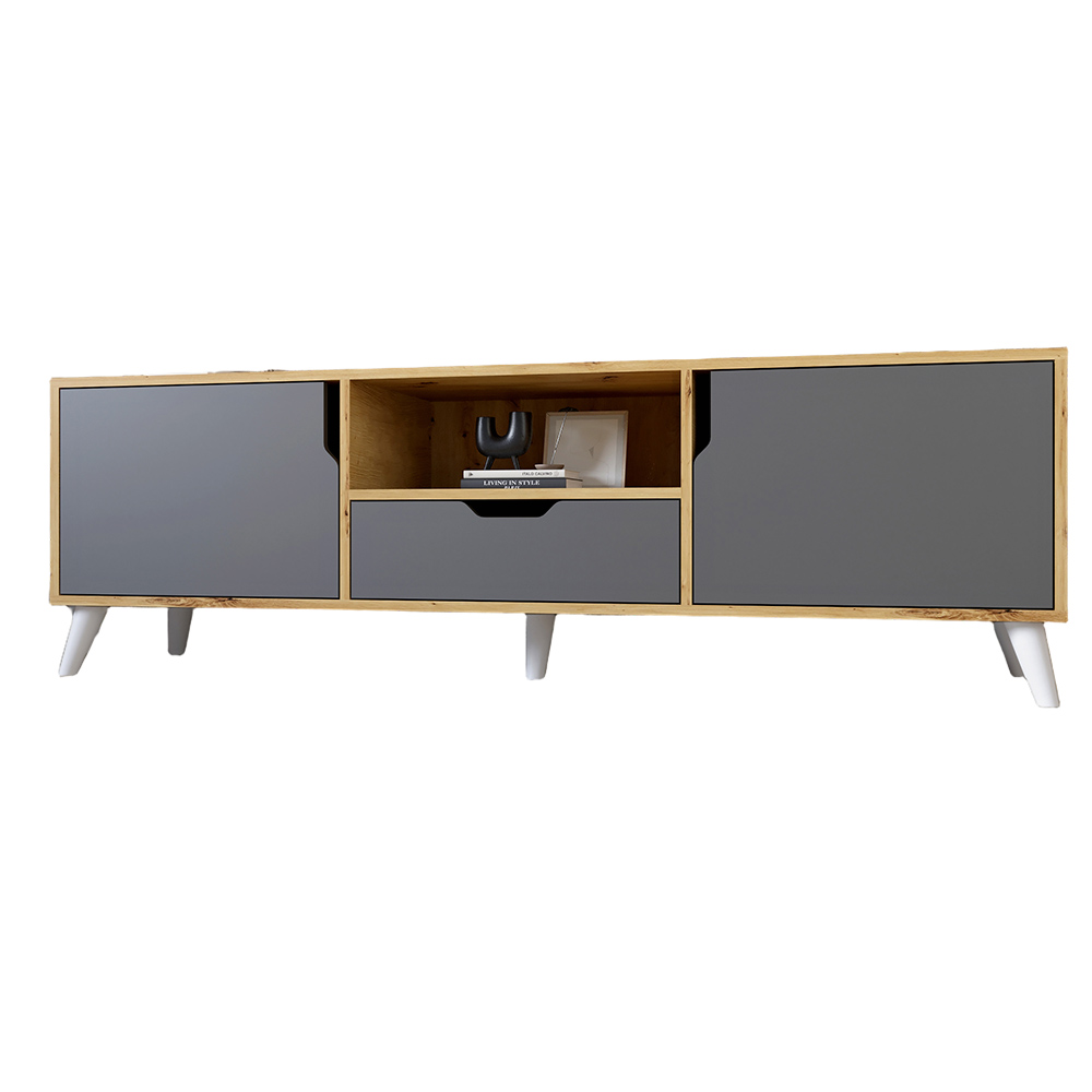 Тумба под телевизор с ножками в цвете Орех светлый М-ЗОН Борн 1600 Дуб артизан/Антрацит (MZN-031078)