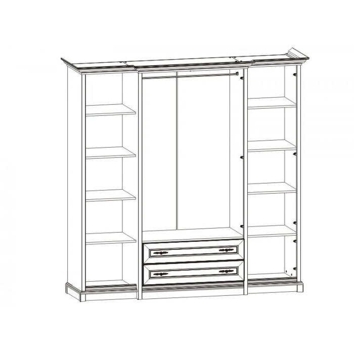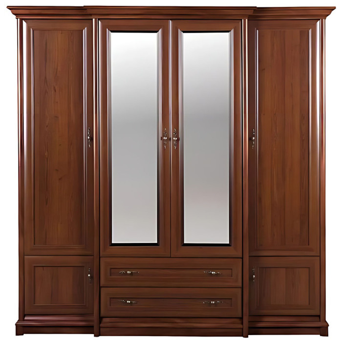 Шкаф оснащен двумя выдвижными ящиками и шестью дверями, что делает его использование максимально удобным. Корпус и фасад шкафа изготовлены из высококачественного ЛДСП/ДСП/МДФ, что гарантирует его долговечность и устойчивость к износу. А рейка для вешалок предложит комфортное размещение пиджаков, блуз и платьев. Это стильная и функциональная модель в классическом стиле принадлежит к коллекции Соната, которая отличается своим неповторимым дизайном и высоким качеством.