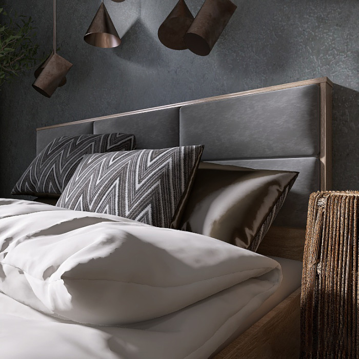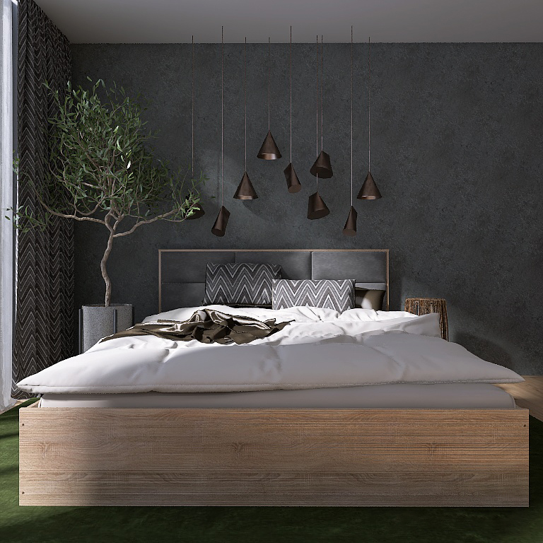 - Эстетика: тканевые элементы на фасаде в сочетании с лаконичными линиями каркаса делают кровать привлекательным акцентом интерьера.