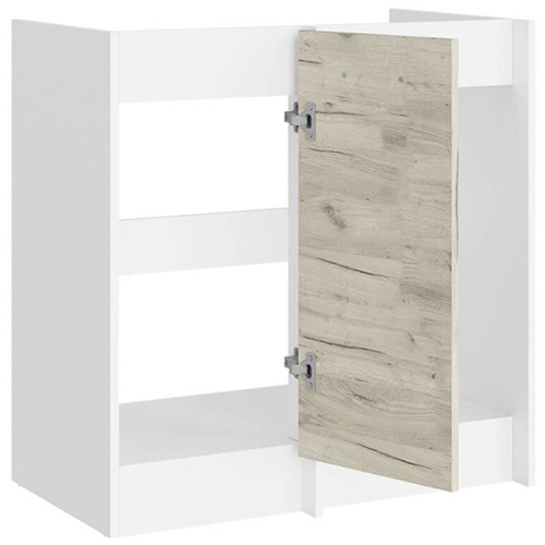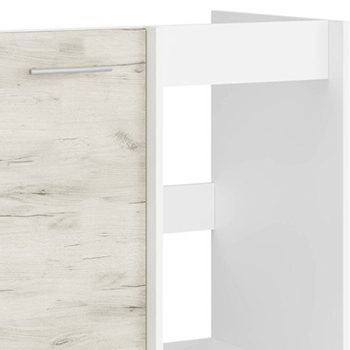 Модуль выполнен из экологически чистого ЛДСП швейцарской компании Kronospan, соответствующего классу эмиссии E1, что гарантирует безопасность для здоровья и долговечность в использовании. Фурнитура обеспечивает плавное открывание и закрывание, а качественное покрытие устойчиво к царапинам, влаге и перепадам температур.