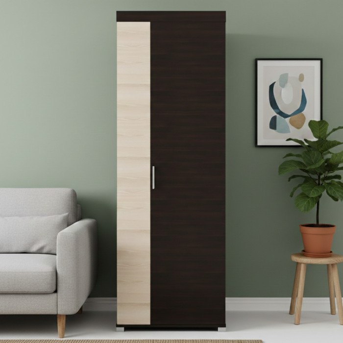 - Компактные габариты: при размерах 70 × 52 × 208 см шкаф остаётся вместительным и подходит даже для помещений с ограниченной площадью.