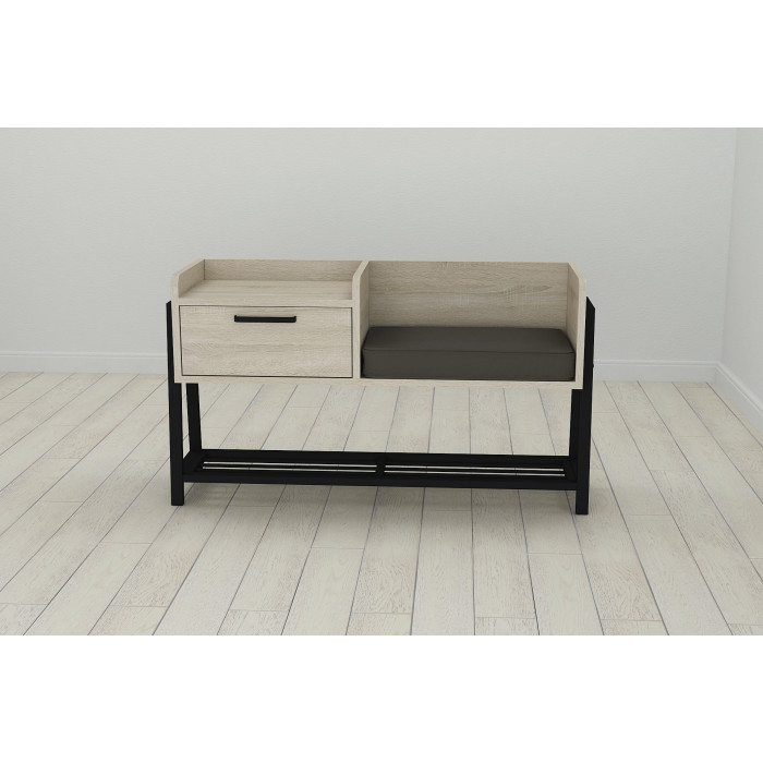 Банкетка с тумбочкой Ferrum-decor Бланка 540x1000x320 металл Черный ДСП Сонома 16 мм (FRD-103027)