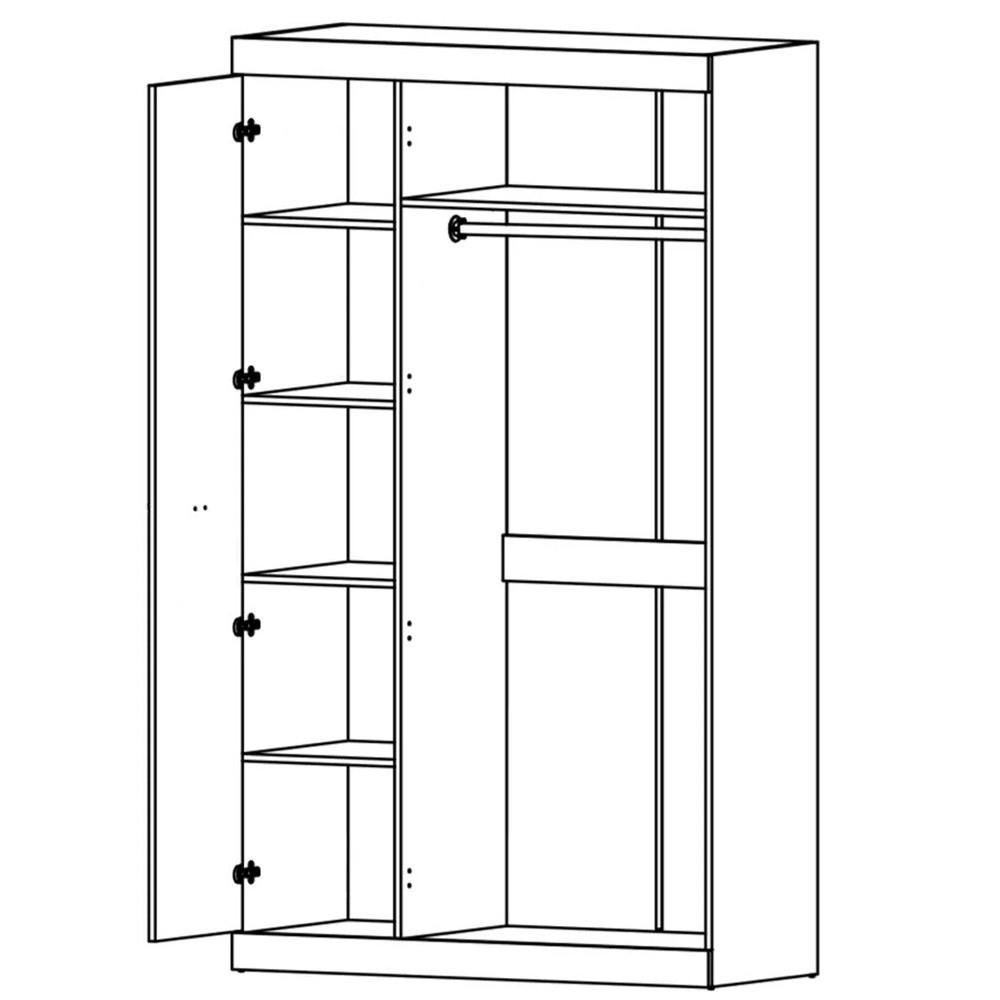 - Сбалансированное наполнение: Стандартная комплектация включает одну прочную штангу для развешивания верхней одежды или платьев и пять вместительных полок, что позволяет удобно распределить вещи по типу хранения.