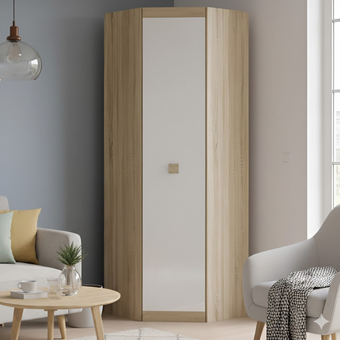 Однодверный угловой шкаф Соната-700 от известной украинской компании Эверест — это образец компактности и функциональности, созданный специально для рационального использования углового пространства. Являясь частью популярной модульной коллекции «Соната», этот шкаф становится идеальным выбором для тех, кто стремится организовать хранение верхней одежды или костюмов в помещениях с ограниченной площадью, таких как небольшие прихожие, кабинеты или уютные спальни. Классическая эстетика модели в сочетании с современными стандартами производства позволяет ей гармонично вписаться в любой интерьер, придавая ему визуальный порядок и завершенность. Благодаря продуманной эргономике, шкаф Соната-700 превращает пустой угол в полезную зону хранения, обеспечивая удобный доступ к вещам и сохраняя при этом ощущение свободного пространства в вашем доме.