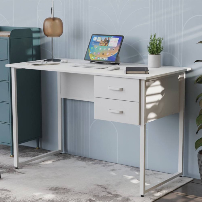 Каркас стола изготовлен из прочного металла с порошковым покрытием, что гарантирует стабильность и долговечность конструкции. Столешница и фасады ящиков выполнены из ламинированного ДСП, устойчивого к царапинам и легкому в уходе. Толщина столешницы может быть выполнена в двух вариантах — 16 или 32 мм, что позволяет выбрать оптимальный вариант под свои нужды. Ящики оснащены телескопическими направляющими, гарантирующими плавное и бесшумное движение.